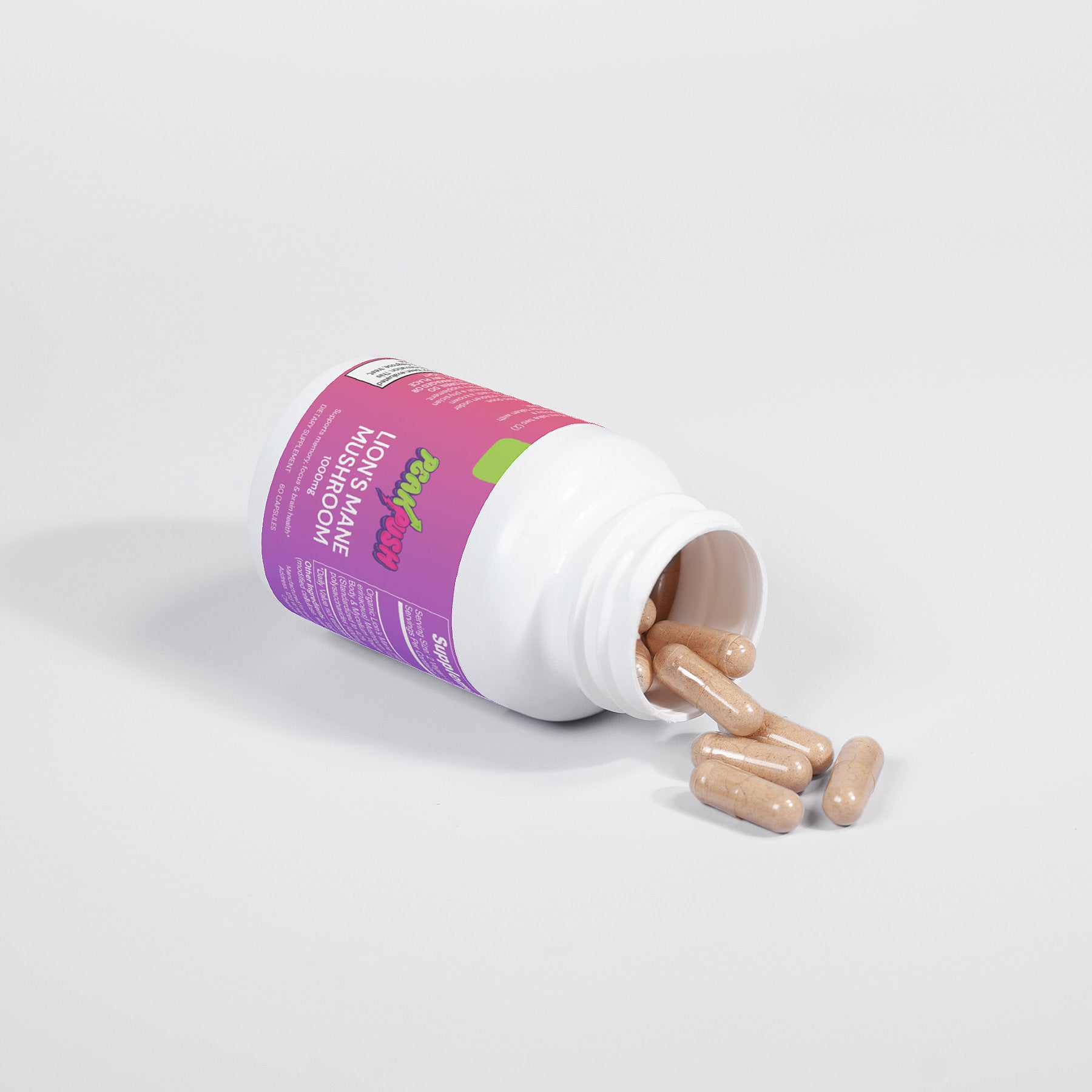 Ingredients: Organic Lion’s Mane (Hericum erinaceus) Mushroom Fruiting Body & Mycelium Powder (Standardized to 40% polysaccharides [400mg]), Vegan Capsule (modified cellulose, water).